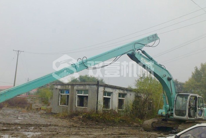 兩節(jié)伸縮臂是雙壹機械2005年自主研發(fā)的突破性產品,被多家同行模仿制造,從未被超越;臂長度19米,采用高噸位的三機聯動折彎設備折成U型,雙U型對接的焊接方式。