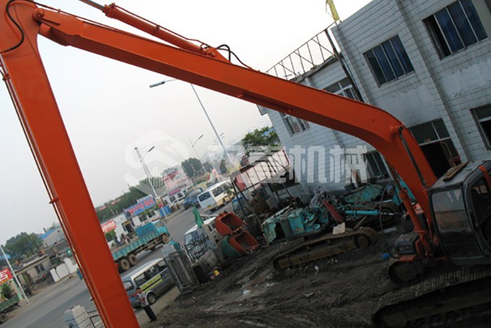 加長(zhǎng)臂:加長(zhǎng)臂是我們最常見,使用時(shí)間更早的大小臂加長(zhǎng)臂,不需要伸縮缸控制。它通過大臂、小臂同時(shí)加長(zhǎng),配帶小挖斗,擴(kuò)大機(jī)械的工作范圍。