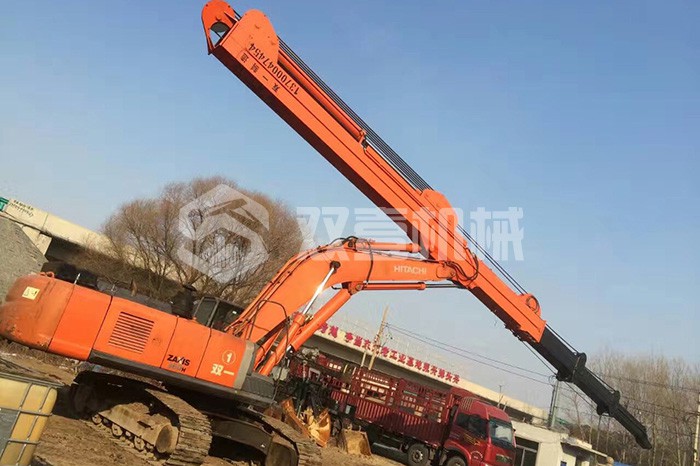 超長四節(jié)臂:總長度可達(dá)48米,臂內(nèi)可再伸出3節(jié),施工深度42.5米,配帶貝殼斗1.8立方或挖掘斗1.0立方。