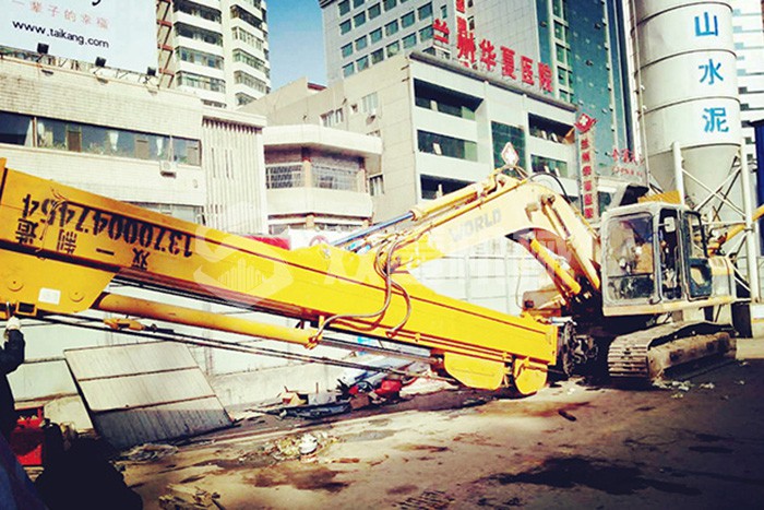 超長(zhǎng)四節(jié)臂:總長(zhǎng)度可達(dá)48米,臂內(nèi)可再伸出3節(jié),施工深度42.5米,配帶貝殼斗1.8立方或挖掘斗1.0立方。