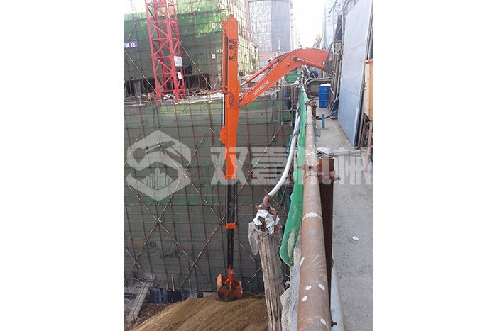 超長(zhǎng)四節(jié)臂:總長(zhǎng)度可達(dá)48米,臂內(nèi)可再伸出3節(jié),施工深度42.5米,配帶貝殼斗1.8立方或挖掘斗1.0立方。